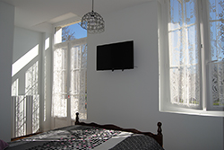 Située au 1er étage de la maison, la chambre Iris est composée d’un lit 2 places, armoitire et télévision avec espace salon. Salle d’eau et wc Wifi