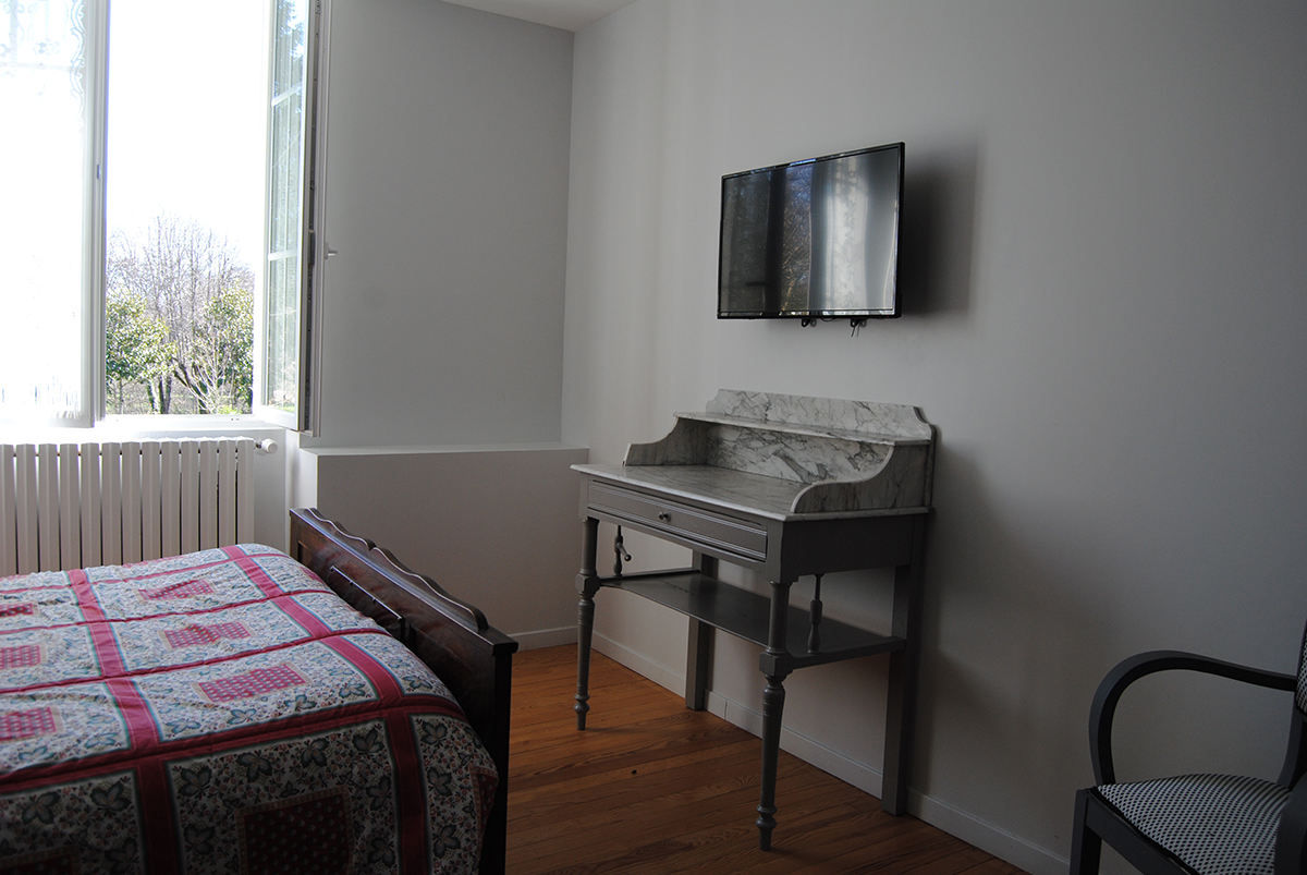Située au 1er étage de la maison, la chambre Chardon Bleu est composée d’un lit 2 places, armoire et télévision. Salle d’eau et wc. Wifi.